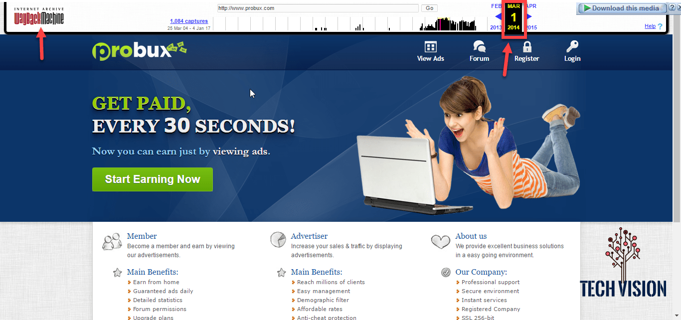تم استخدام موقع WayBackMachine للرجوع الى شكل الصفحة في سنة 2014 وكما تلاحظون الموقع كان يعمل